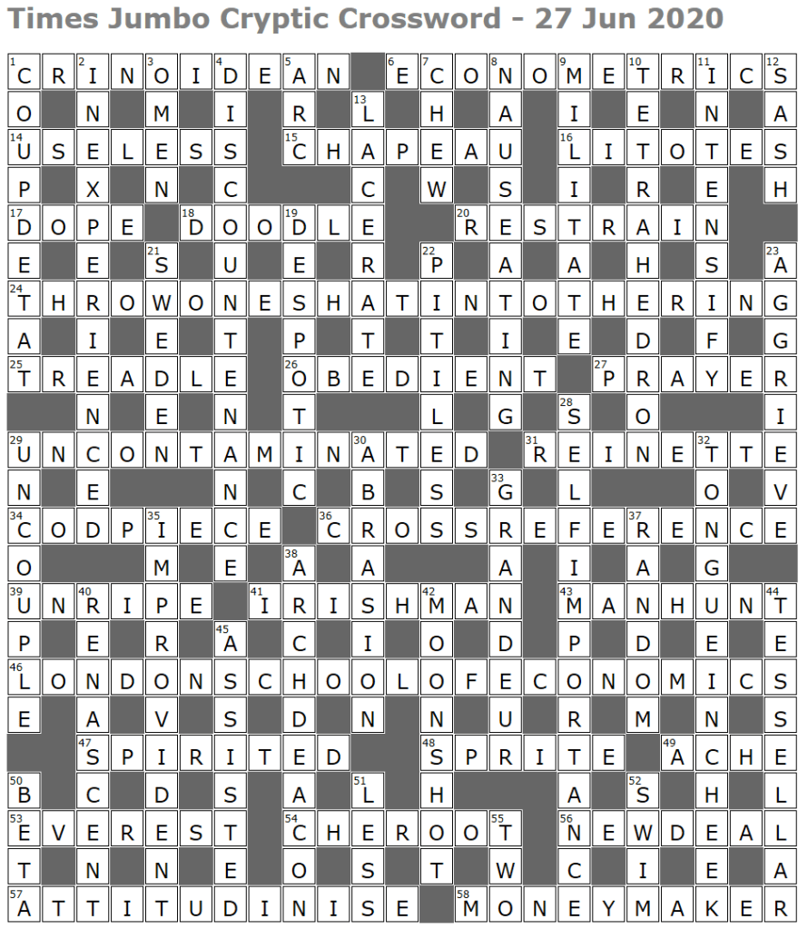 While you are here, I do have some non-crossword-related content somewhere around here, honest guv. There’s a dusty collection of book reviews, for example, or a story I put out a while ago. But it’s mainly crosswords at the moment, which is a bit naff. Speaking of which, if you’ve come a cropper against a recent Times Jumbo Cryptic, then my Just For Fun page might be just the tonic.