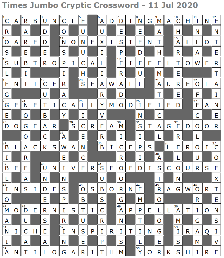Agreed! And it seems your wish was granted – just polished off this weeks and the only one I can’t fully explain is 3 down, looking forward to your interpretation!