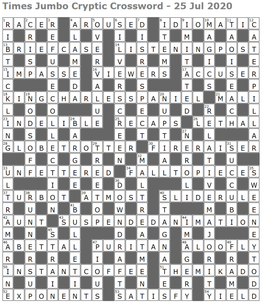 As ever, you can find my completed grid below along with explanations of my solutions. I hope you find them useful. Meanwhile, you can find previous solutions to the last couple of years’ Jumbos on my Just For Fun page. I’ve also got some book reviews and a story of mine knocking about the place.