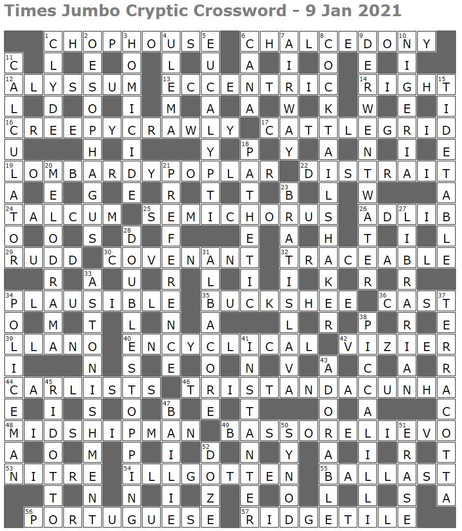 A medium strength puzzle this week, though you’d be forgiven for thinking otherwise looking at some of the solutions on show. A good deal of the exotics were gettable, thankfully, with some relatively straightforward clueing (and a decent thumbing of reference books). All in all, a decent one.