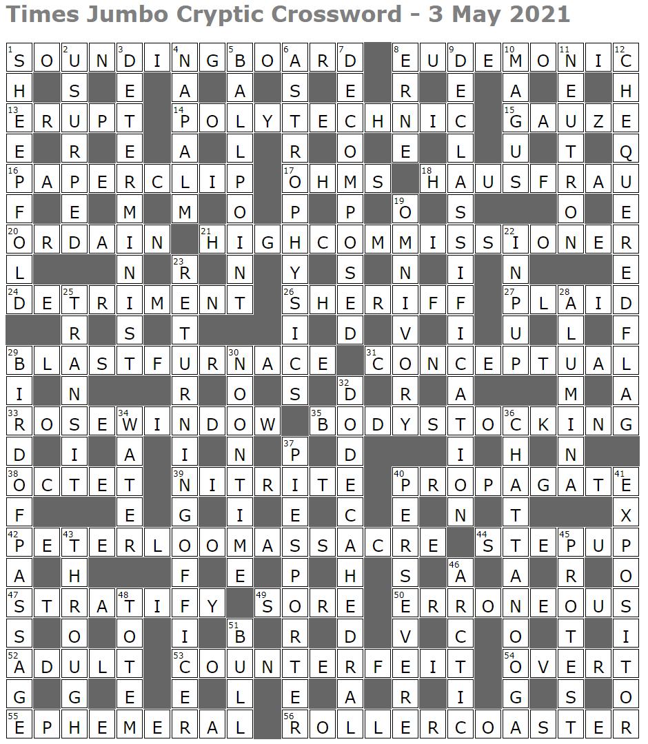 Times Jumbo Cryptic Crossword 1496