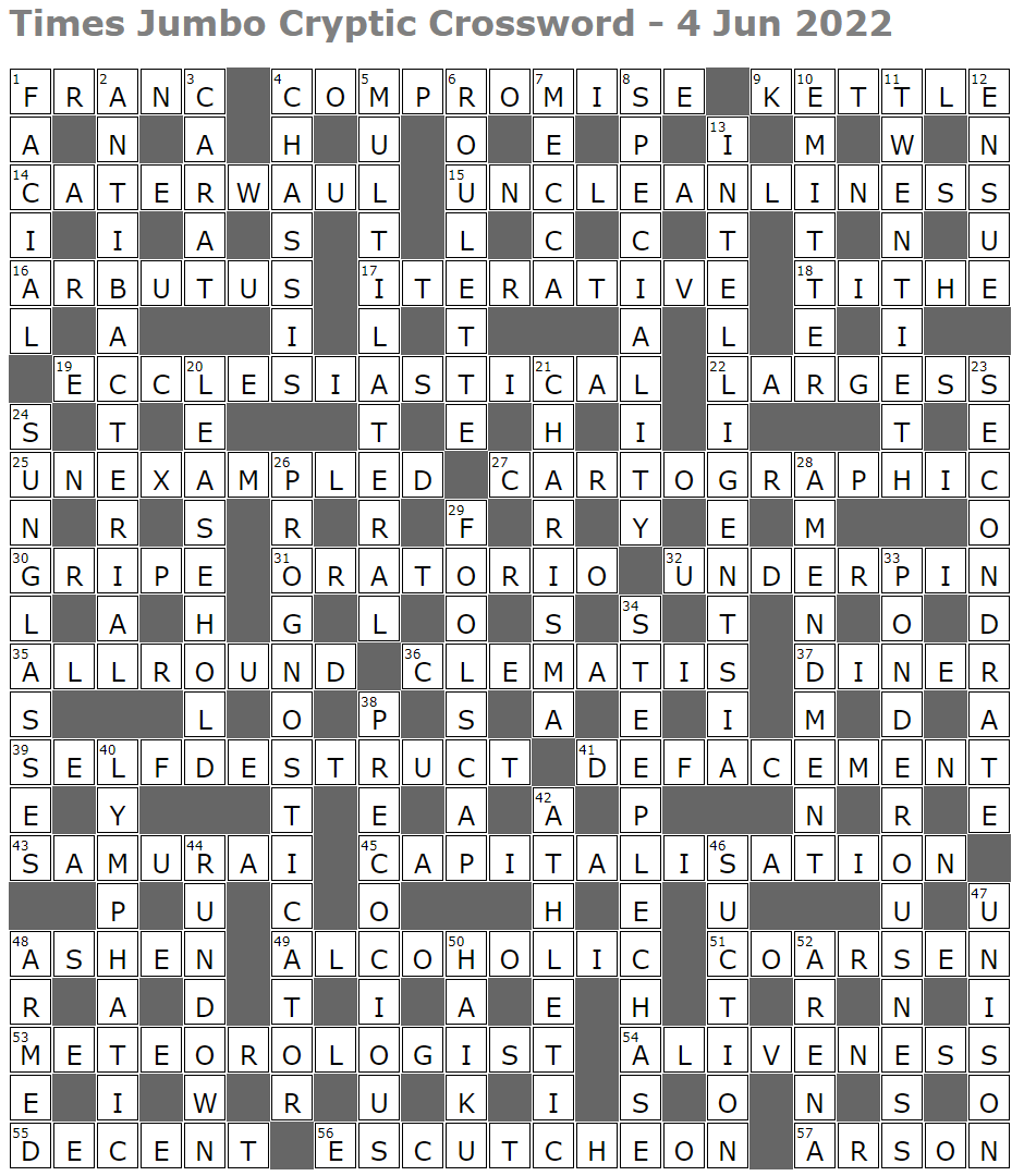 8 thoughts on “Times Jumbo Cryptic Crossword 1560