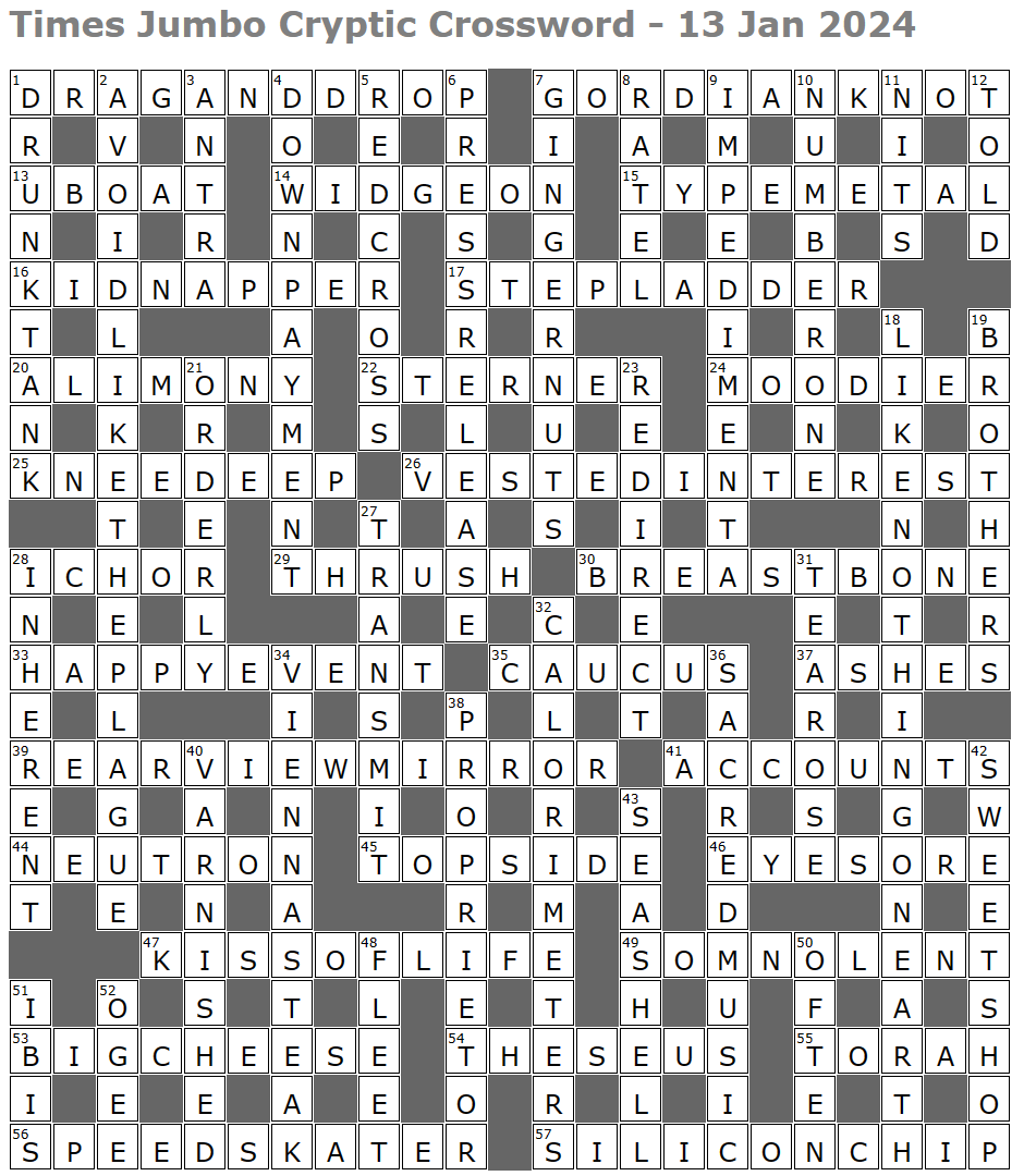 Now that the competition deadline has passed you can find my completed grid below along with explanations of my solutions where I have them. I hope you find them helpful. If a recent Jumbo has flipped you the bird then you might find my Just For Fun page of use, where you’ll find links to solutions for hundreds of the things.
